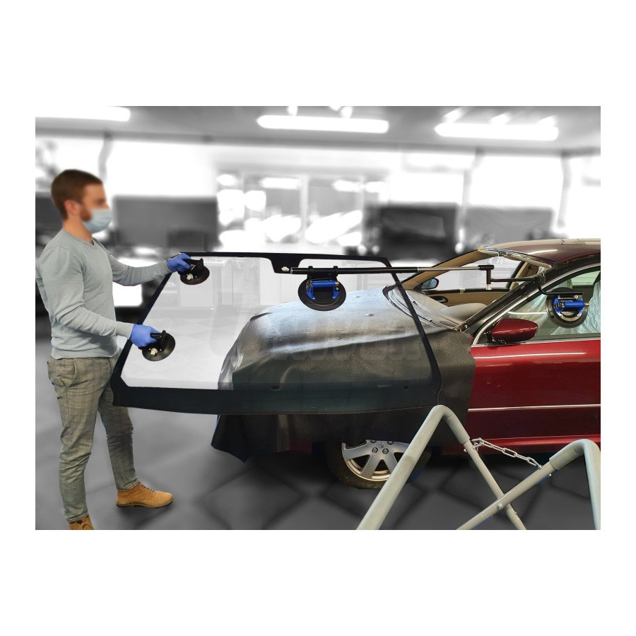 Súprava na montáž a demontáž čelných skiel na väčšine vozidiel len jednou osobou.- vďaka tejto patentovanej sade sa inštalácia čelného skla automobilov stáva rýchlym, jednoduchým a bezpečným úkonom
