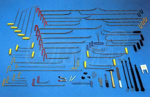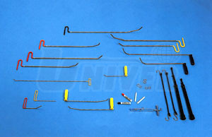 Soupravy špičkového nářadí pro odstraňování důlků a promáčklin karosérií jejich vytlačením technologií PDR obsahují zejména vytlačovací a rovnací páky, háky a další příslušenství.- opravy důlků a promáčklin na karosériích vozidel technologií PDR (Paintless Dent Repair) se provádějí pomocí speciálního nářadí a pomůcek za studena bez nutnosti provádět konvenční tmelení, broušení a lakování poškozeného místa, přičemž oprava vyžaduje méně času a je levnější, typickým příkladem takových poškození jsou třeba menší deformace po úderech krup, při parkování, při transportu vozidel apod.