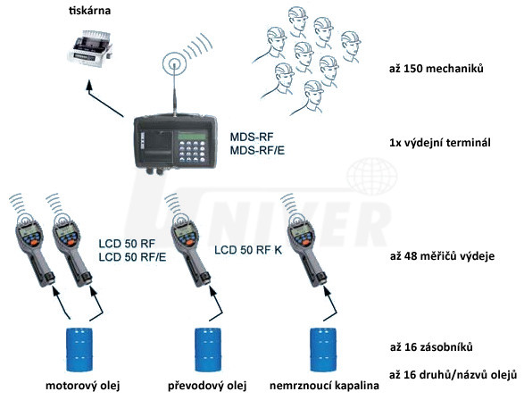 Kompaktní systém sestává z výdejního terminálu s integrovanou tiskárnou MDS-RF (není cejchovaný) nebo MDS-RF/E (cejchovaný) a až 48 měřičů výdeje LCD 50 RF nebo LCD 50 RF K (oba nejsou cejchované), případně i cejchovaného měřiče výdeje LCD 50 RF/E.