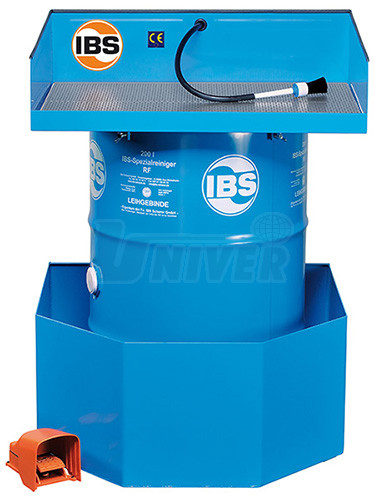 Sešlápnutím nožního spínače se uvede čerpadlo do provozu a mezitím co se myjí znečištěné díly, stéká použitá kapalina zpátky do sudu, kde se nečitosty samostatně oddělují a usazují na dně sudu. Současně nasává hrdlo čerpadla, které sahá pouze do poloviny sudu, čistou čistící kapalinu. Dlouhá použitelnost IBS-speciálních kapalin je tímto způsobem zaručena. Znečištěná kapalina se vymění za nový sud.