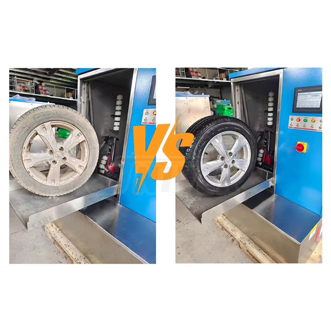 Umývačka kolies osobných a ľahkých úžitkových automobilov s ohrevom vody, automatickým riadením PCL a nastaviteľnou dobou čistenia.- umožňuje vyvažovanie kolies zbavených nečistoty, čo je jedným z predpokladov vysokej úrovne poskytovaných služieb