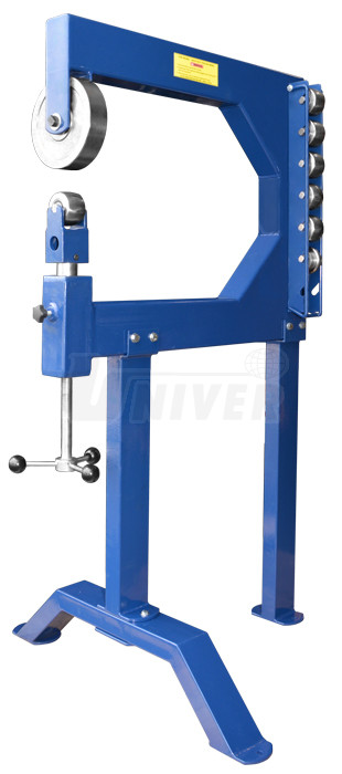 - vrchní válcovací kolo je rovné, spodní má kulatý profil a plech tvaruje, spodní tvarovací rolny lze zvolit v různém tvaru a kvalitě, nastavení těchto rolen se provádí pomocí nožního klikového mechanismu