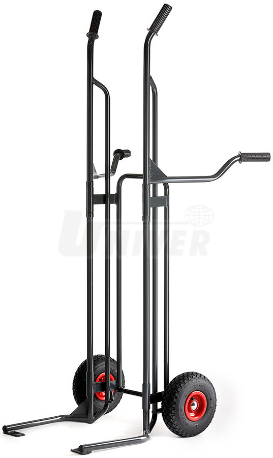 - dlouhá držadla slouží jako páka, takže vozík se zátěží lze bez větší námahy naklopit