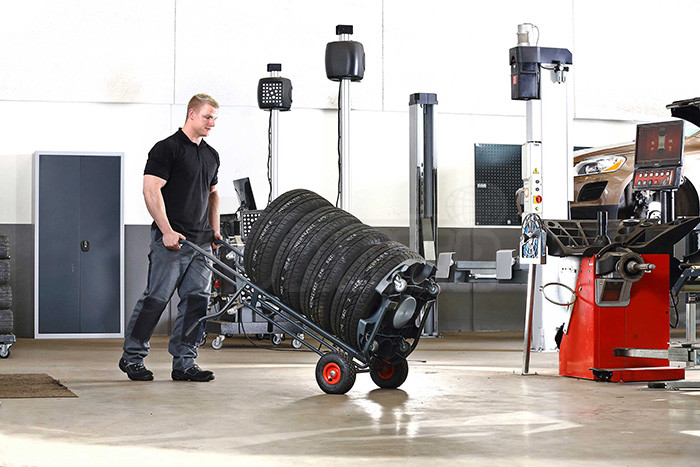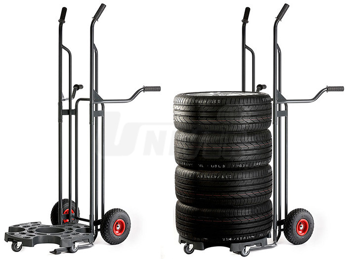 Účelný a snadno ovladatelný dvoukolový vozík pro přepravu pneumatik nebo kol s nosností až 200 kg.- nízká hmotnost