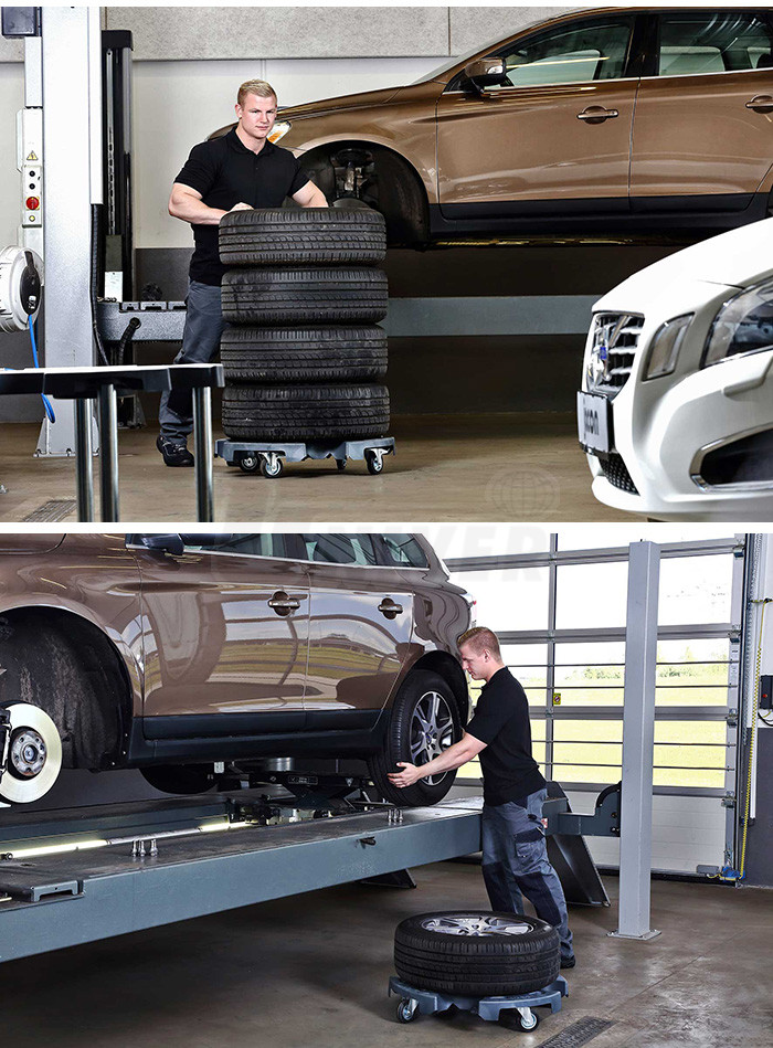 - praktický pomocník při výměně pneumatik, pro uložení a přepravu kol po dílně nebo do skladu