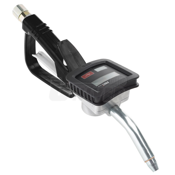 Plnicí / výdejní pistole na olej s digitálním průtokoměrem 0 – 30 l / min, aluminiovou skříní, zahnutým kovovým nástavcem a otočným kloubem.- plnicí / výdejní pistole na motorový olej SAE 5 až 50 a převodový olej SAE 80 až 240 se zahnutým kovovým nástavcem