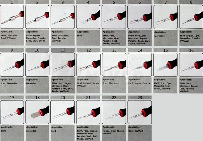 23-dílná sada pro snadné rozpojování konektorů pokrývá většinu typů vidlicových, plochých i kulatých konektorů.Sada obsahuje: