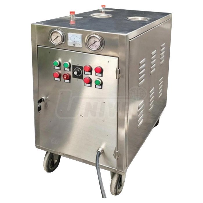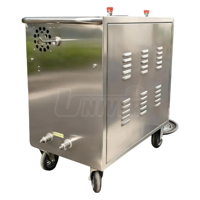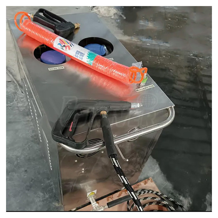 Profesionálny elektrický vysokotlakový parný umývací stroj pracuje s teplotou suchej aj vlhkej pary 200°C až 230°C pri tlaku 12 – 15 bar.- elektrický vysokotlakový parný umývací stroj produkuje suchú aj vlhkú paru, tlak a množstvo pary je možné plynule nastavovať