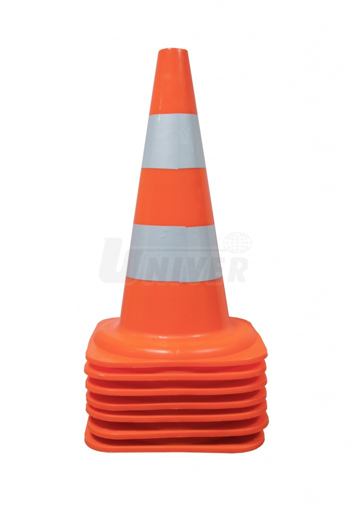 - oranžová barva a 2 výrazné bílé reflexní pásky (každý o šířce 80 mm) umožňují vidět kužel z velké vzdálenosti, a to i za snížené viditelnosti