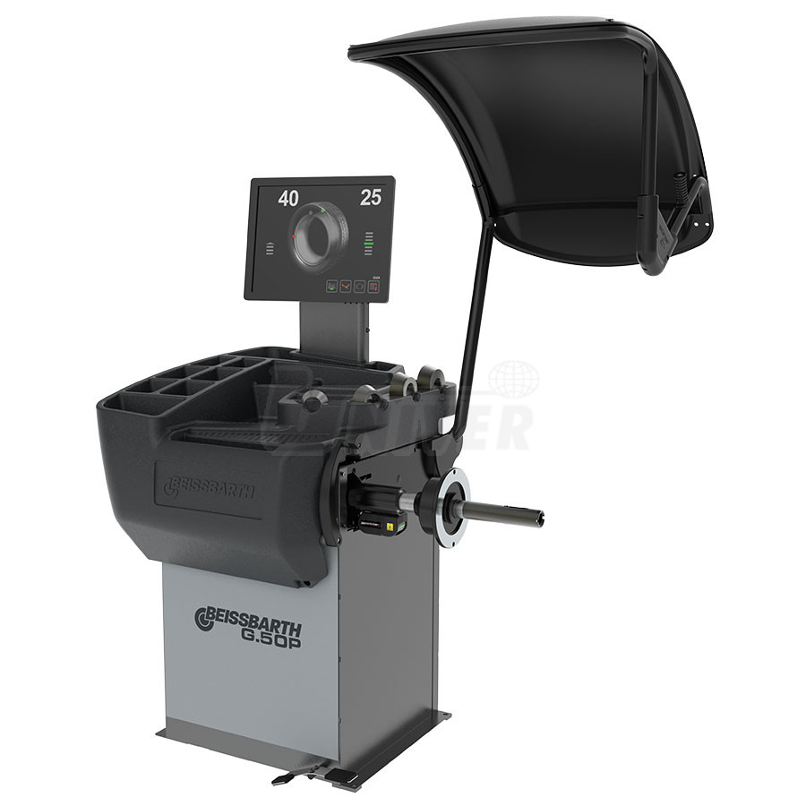 Vyvažovačka kol osobních a lehkých užitkových vozidel a kol motocyklů (10" – 30") s pneumatickým upínáním kol, monitorem 19" a sonarem.- pneumatická upínací příruba s přítlačnou sílou 250 kg zajišťuje dokonalé upnutí kol