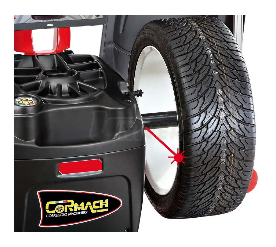 Vyvažovačka kol osobních a lehkých užitkových vozidel a kol motocyklů (8" – 35") s laserovým ukazatelem pro umístění závaží a sonarem.- velmi tichý chod