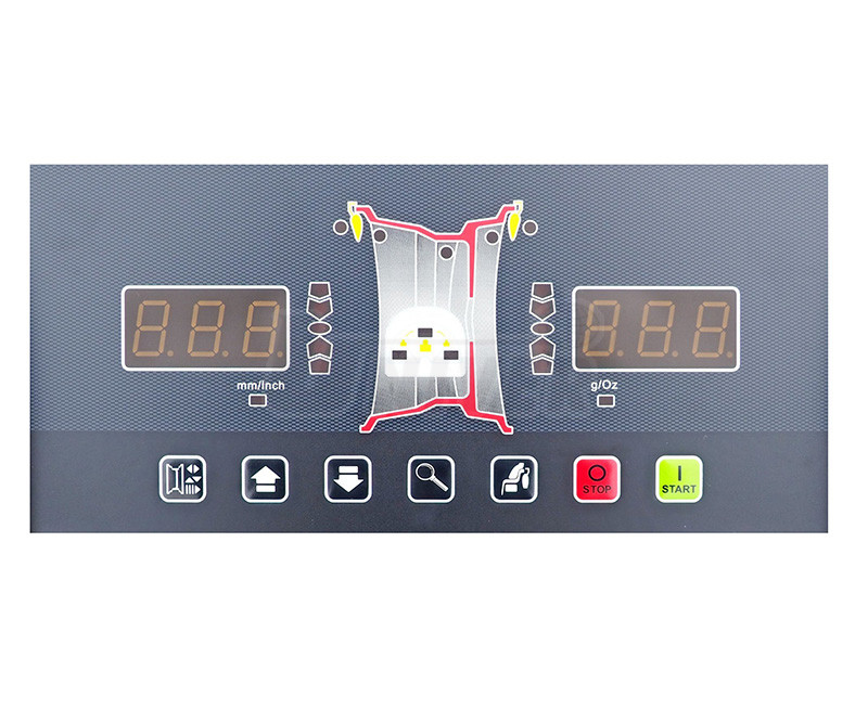 - LED-grafika ukazující místo pro umístění vyvažovacího závaží