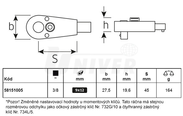 Ráčna k momentovým klíčům se zástrčným čtyřhranem, přepínatelná, 30 zubů.Trvalá zatížitelnost čtyřhranu podle DIN EN ISO 6789:2003. Při použití větších momentových klíčů a držáků nářadí nesmí být zatížitelnost překročená.