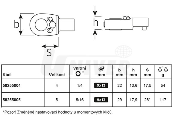Ráčny k momentovým klíčům pro přímé upínání bitů-šroubováků 1/4" nebo 5/16", vnější šestihran C 6,3 nebo C 8.