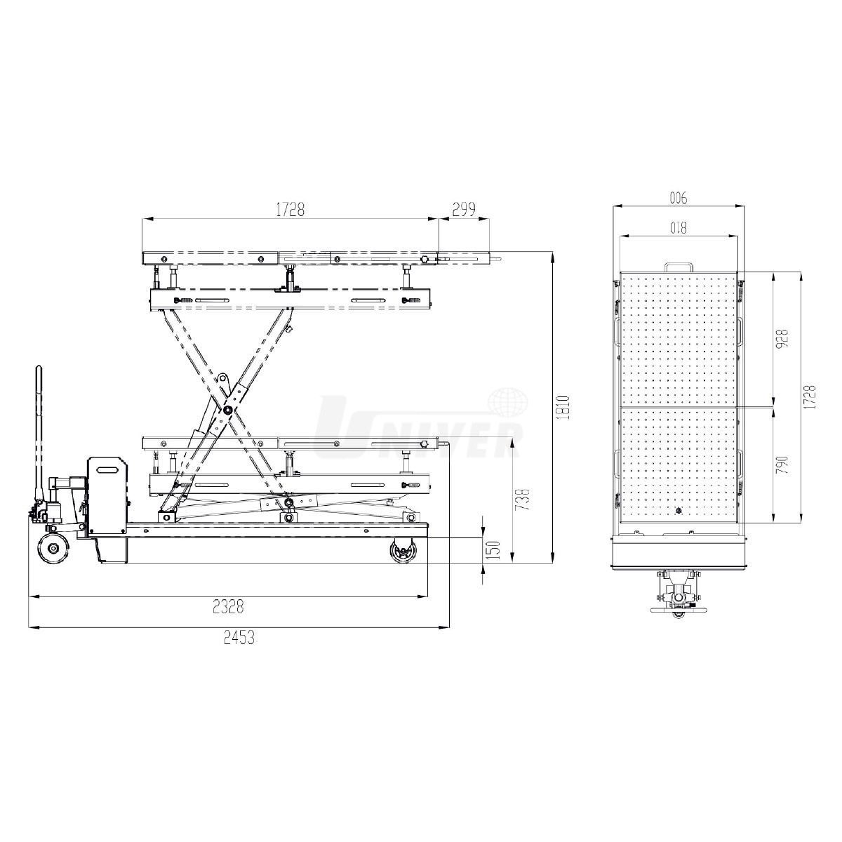 Zdvíhacia plošina pre montáž batérií elektromobilov WP1500
