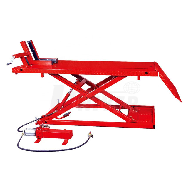 Pneumaticko-hydraulický zdvihák s rozmernou plošinou, s nožnicovou zdvíhacou konštrukciou a ľahkým ovládaním.- pre motocykle, štvorkolky a poľnohospodársku mechanizáciu