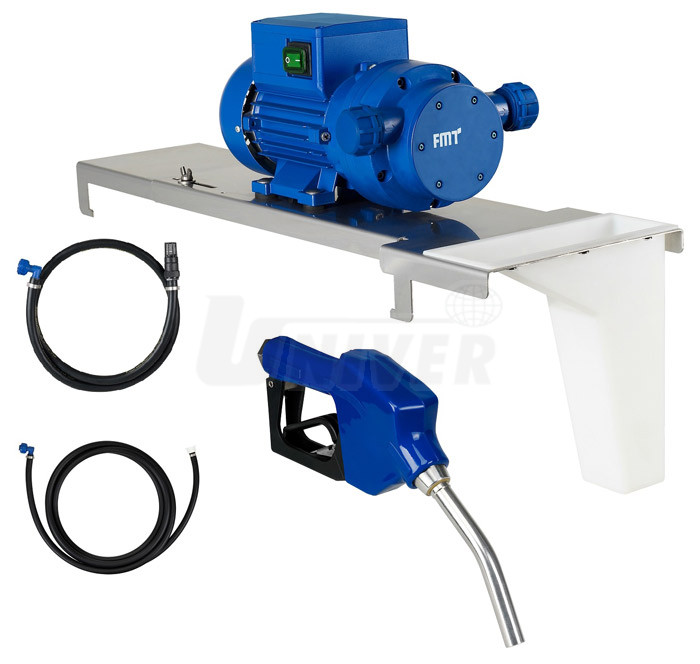 Sestava na sud s elektrickým samonasávacím membránovým čerpadlem 230 V pro AdBlue a vodu, s deskou pro instalací na sud, s držákem výdejní pistole, se sací hadicí a s automatickou výdejní pistolí.- sestava pro instalaci na sud s elektrickým samonasávacím membránovým čerpadlem s automatickou výdejní pistolí
