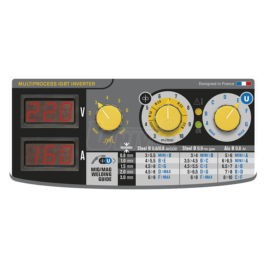 Kombinovaný invertorový svařovací přístroj pro poloautomatické svařování v ochranné atmosféře MIG/MAG (30 – 160 A) a rutilovou svařovací elektrodou MMA (20 - 140 A).- svařovací přístroj pro svařování MIG/MAG s ochranným plynem a drátem Ø 0,6 až 0,8 mm nebo trubičkovým drátem Ø 0,9 mm bez plynu a rovněž rutilovou elektrodou MMA Ø 1,6 až 3,2 mm