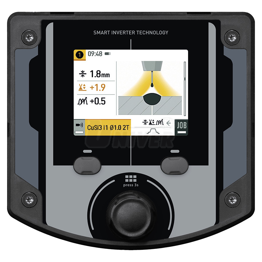 - integrovaná součinnost výrazně usnadňuje seřízení a snižuje rozstřik při svařování, jasné a snadno použitelné rozhraní umožňuje přesnou kontrolu svařovacích parametrů, aby byla zajištěna dokonalá kvalita svařování