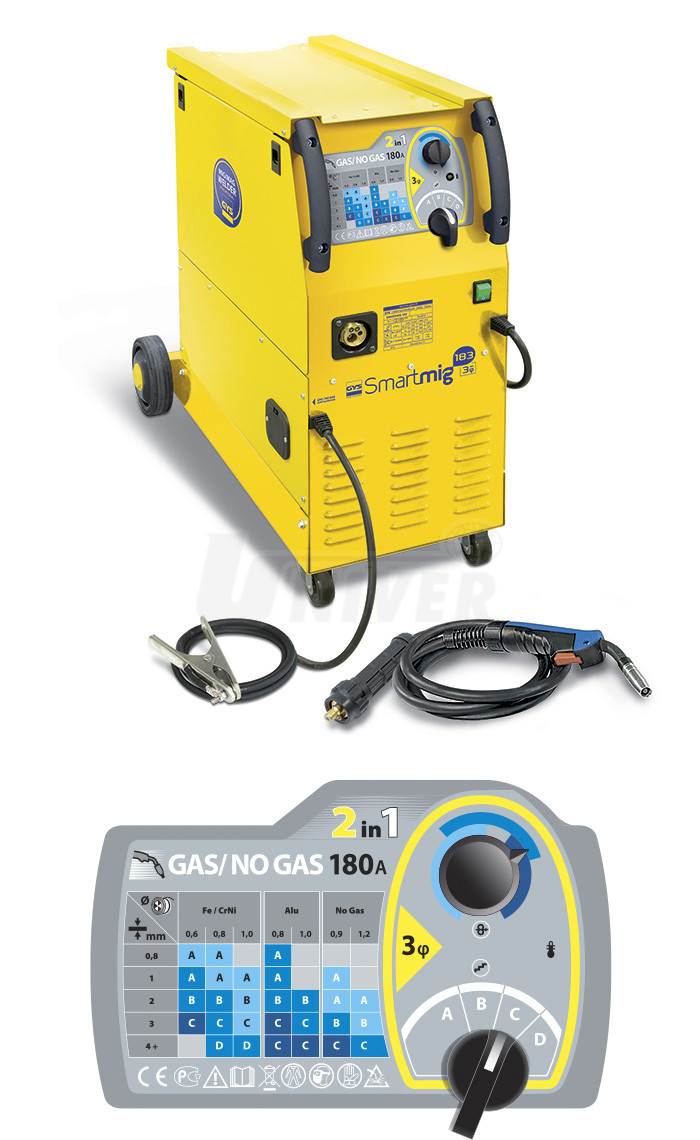 Svařovací přístroj vysoké kvality umožňující svařování MIG/MAG (drát Ø 0,6-1,0 mm) a svařování MIG bez ochranné atmosféry (NOGAS) s použitím trubičkovéhodrátu (drát Ø 0,9 -1,2 mm).- polosynergický pojízdný přístroj s mikroprocesorovým řízením je určený pro běžné svařování oceli, nerezoceli, litiny i hliníku (s příslušným hořákem a ochranným plynem/argon) v dílnách, v údržbě apod.