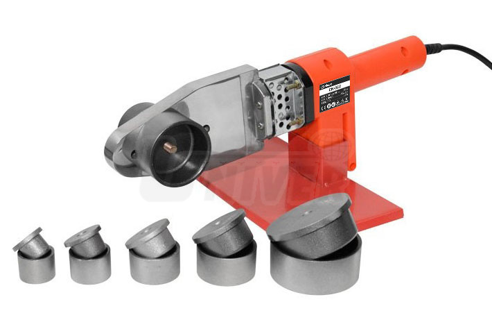 Svářečka plastových trubek 800 W s automatickým termoregulátorem, 6 nástavců Ø 20/25/32/40/50/63 mm, stojan a příslušenství.- pro polyfúzní svařování všech termoplastických materiálů, zejména spojování plastových trubek (nejčastěji z PP, PE, PB, PPC, PPR nebo PVDF) pomocí tvarovek v rámci instalačních prací, především vnitřních rozvodů vody a topení