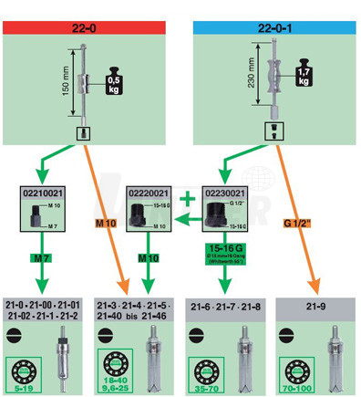 - tyto vnitřní vytahováky se používají ve spojení s kluznými kladivy nebo vzpěrnými přípravky (řada 22),