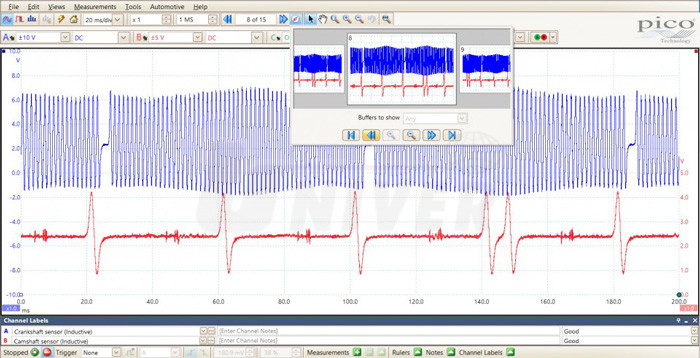 - použít lze rovněž systém PicoDiagnostic, který provede kontrolu po jednoduchém připojení na baterii kontrolu stavu motoru – test komprese (relativní komprese na každém válci), vyvážení válců / výpadky zapalování (na každém válci), test baterie (CCA, měří se stav nabití a napětí během startování motoru), test startéru (měří se odpor cívky startéru a úbytek napětí na kabelech), test alternátoru (měří se nabíjecí napětí a proud, zjišťuje se nepřiměřené diodové zvlnění), výsledky jsou zobrazeny i jako sloupkové diagramy