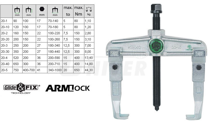 2-ramenné stahováky s posuvnými háky německé firmy KUKKO-Werkzeugfabrik patří do nejvyšší kvalitativní třídy v Evropě.Vlastnosti: