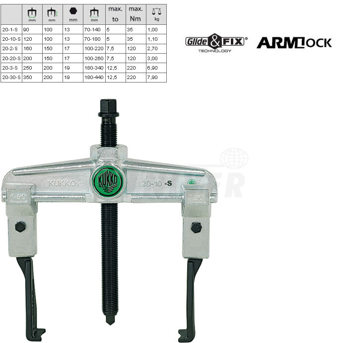2-ramenné stahováky s posuvnými háky pro úzké prostory německé firmy KUKKO-Werkzeugfabrik patří do nejvyšší kvalitativní třídy v Evropě.Vlastnosti: