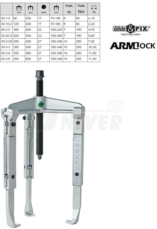 3-ramenné stahováky s posuvnými háky německé firmy KUKKO-Werkzeugfabrik patří do nejvyšší kvalitativní třídy v Evropě.Vlastnosti: