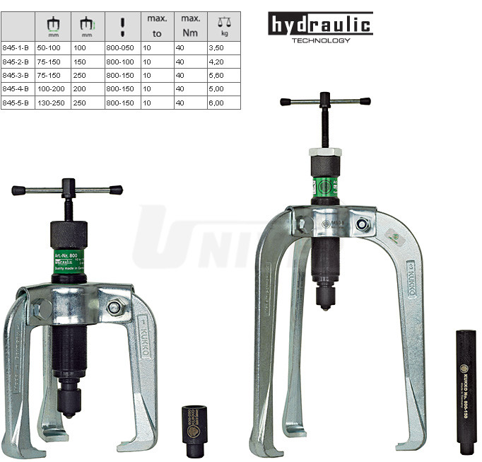 2-ramenné stavebnicové hydraulické stahováky německé firmy KUKKO-Werkzeugfabrik patří do nejvyšší kvalitativní třídy v Evropě.Vlastnosti: