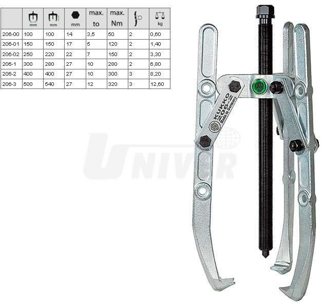 3-ramenné stahováky s výkyvnými háky a nastavitelnou hloubkou upnutí německé firmy KUKKO-Werkzeugfabrik patří do nejvyšší kvalitativní třídy v Evropě.Vlastnosti:
