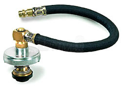 Úhlové adaptéry řady KW..- mají ve vrchní části úhlový kus 90° pro připojení hadičky zakončené rychlospojkovým elementem pro připojení rychlospojky přístroje pro zkoušení těsnosti chlazení (např. Ruční tlakové pumpy pro zkoušení chladicích systémů TVU 139/1S).