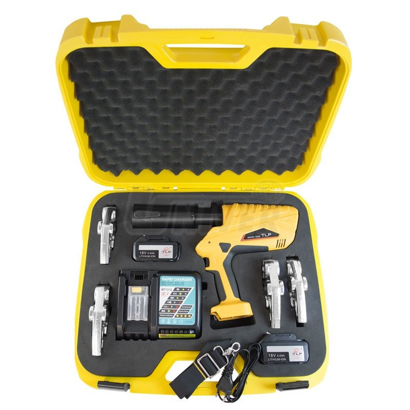 Akumulátorový přístroj pro hydraulické radiální lisování při spojování vícevrstevných trubek PEX-AL-PEX a PB-trubek s různými lisovacími tvarovkami.- akumulátorový přístroj pro hydraulické radiální lisování (radiální hydraulický lis)