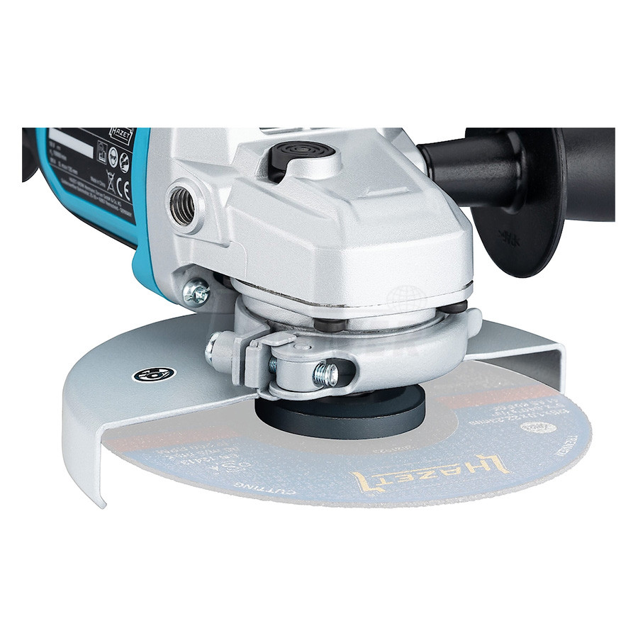 Akumulátorová úhlová bruska pro rozbrušovací a hrubovací práce s využitím kotoučů o průměru 125 mm.- akumulátorová úhlová bruska 18 V s rozbrušovacími a hrubovacími kotouči Ø 125 mm