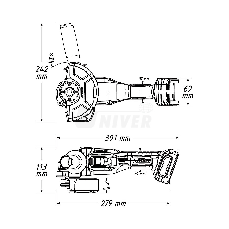 Ø 125 mm M14 10000 ot/min Li-Ion 18 V, 5,0 Ah 81 dB(A) Lp A 7,90 ms-2 - 10°C až 40°C 295 x 75 x 120 mm 1,6 kg |