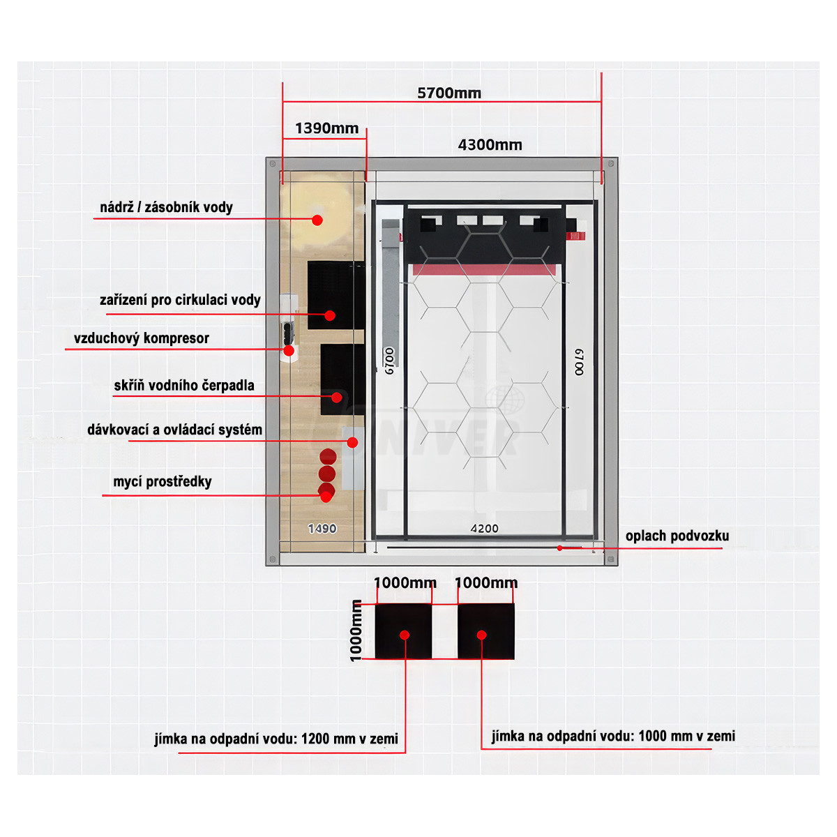 | Rozmery umývačky | 2600 × 950 × 500 mm |
