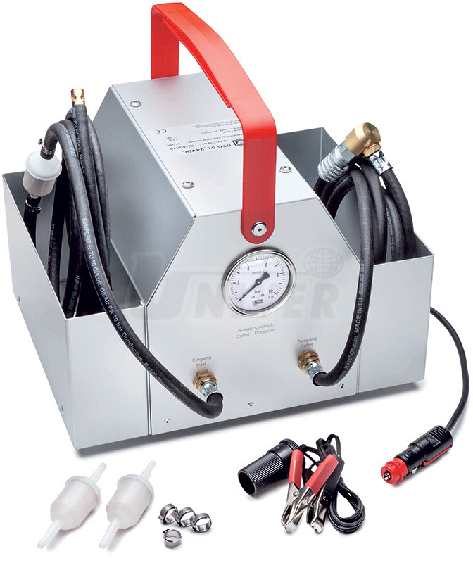 Elektrické čerpadlo pro odvzdušnění palivových systémů vznětových motorů HDEP/MDEG nákladních automobilů po opravách nebo při prázdné nádrži paliva.- při procesu odvzdušnění se nasává motorová nafta a tím se zabrání běhu vstřikovacího čerpadla na sucho