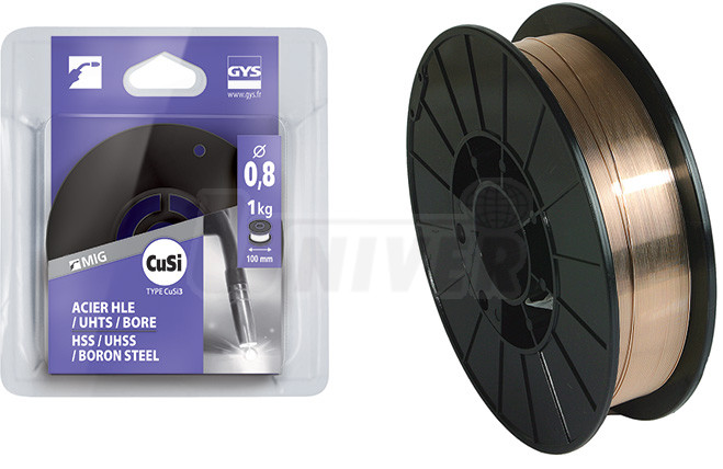 Cívky vysoce kvalitního svařovacího drátu pro pájení slitin mědi, mědi a křemíku, mědi a zinku, pájení pozinkovaných plechů apod. metodou MIG/MAG.Dodavatel: GYS / Francie, normy: DIN 1733:CuSi3AlMg5, AWS A 5.7:ER CuSi-A