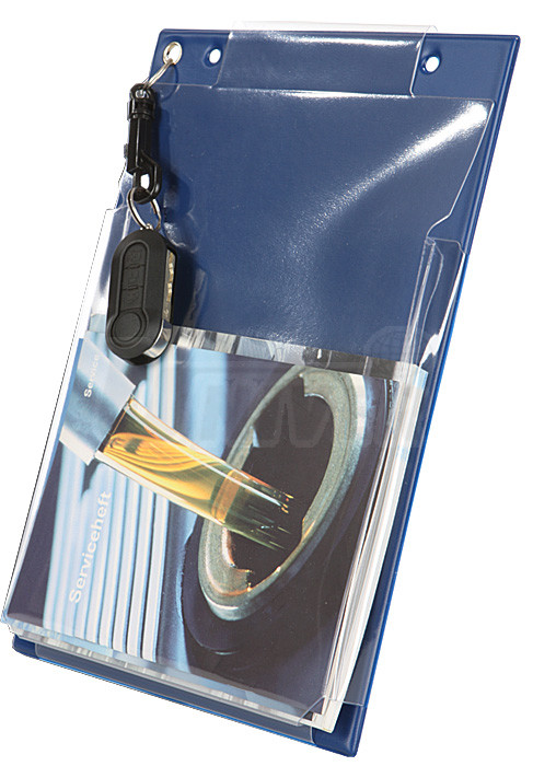 - průhledná přední fólie s vysokou pevností a mechanickou odolností je na dvou stranách otevřená, což usnadňuje vložení zakázkového listu nebo jiných dokumentů, a doplněná ve spodní části malou průhlednou kapsičkou (např. pro Osvědčení o registraci vozidla)