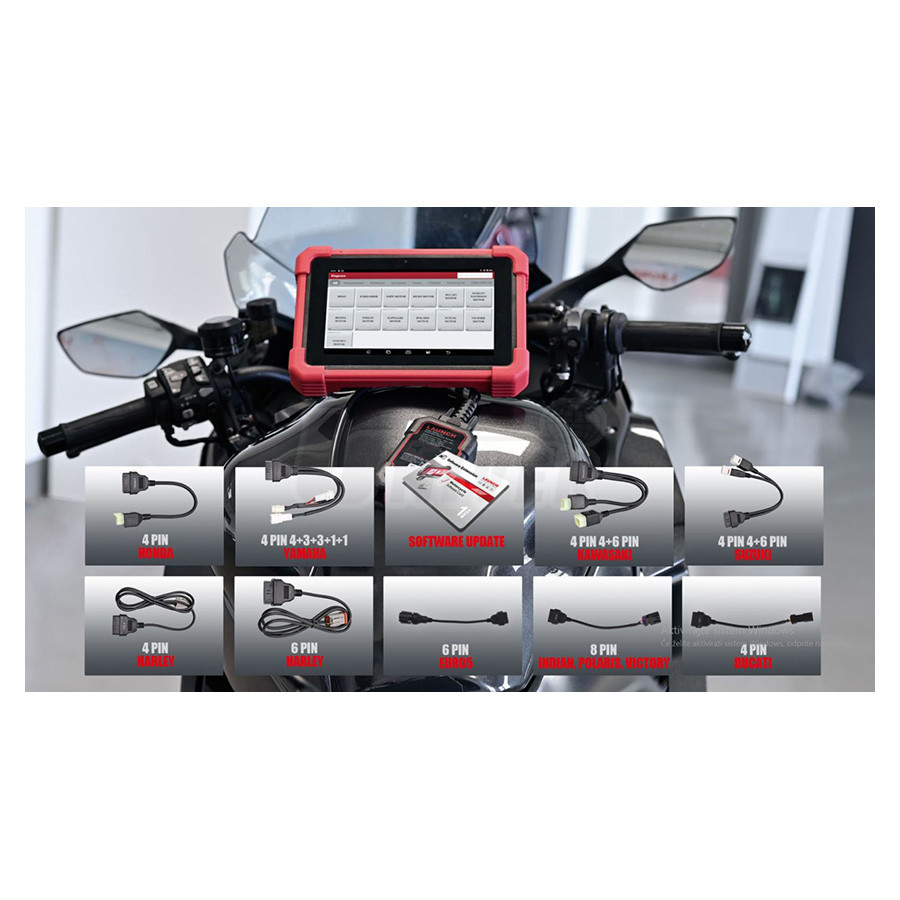 Systém na diagnostiku motocyklov, skútrov, mopedov, štvorkoliek, snežných skútrov a vodných skútrov mnohých významných výrobcov/značiek.- podporuje najdôležitejšie diagnostické funkcie, ako je čítanie a mazanie chybových kódov s definíciami, čítanie dátových tokov (Data Stream / aktuálne parametre v reálnom čase z rôznych snímačov), testy akčných členov (napr. zapnutie/vypnutie relé, vstrekovačov, solenoidov atď.), identifikácia riadiacej jednotky, automatické rozpoznanie VIN, aktivácia komponentov, Freeze Frame Data (snímka hodnôt kritických parametrov v čase zaznamenania chybového kódu).