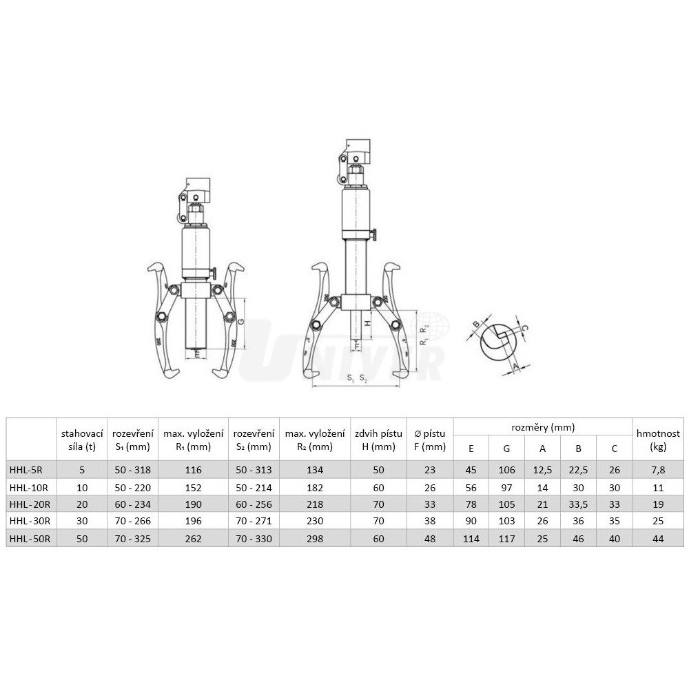HHL-50R Dvou- nebo tříramenný hydraulický stahovák