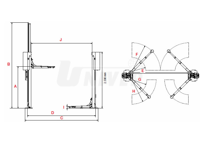 | Průjezdná šířka zvedáku (D) | 2490 mm |