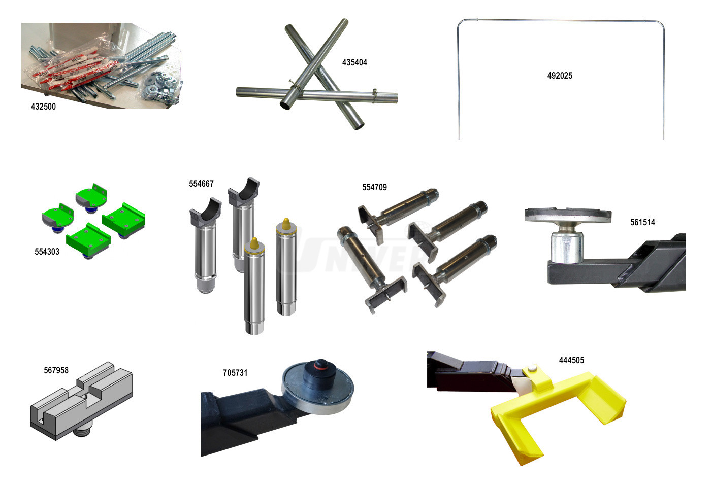 554667 Úchyty pro vozy MB Sprinter / VW Crafter, sada obsahuje 2 ks pro přední a 2 ks pro zadní nápravu, pro dvousloupové zvedáky s nosností vyšší než 4,5 t