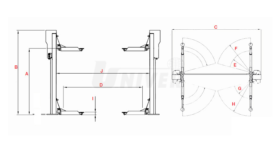 | Průjezdná šířka zvedáku (D) | 2360 mm |