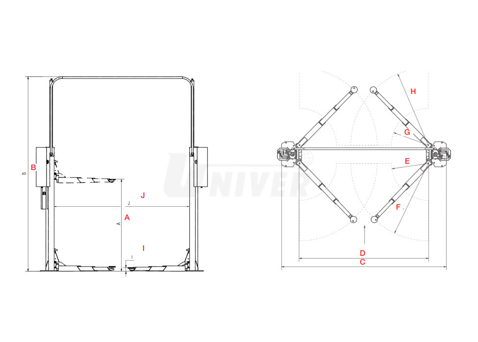 | Průjezdná šířka zvedáku (D) | 2360 mm |