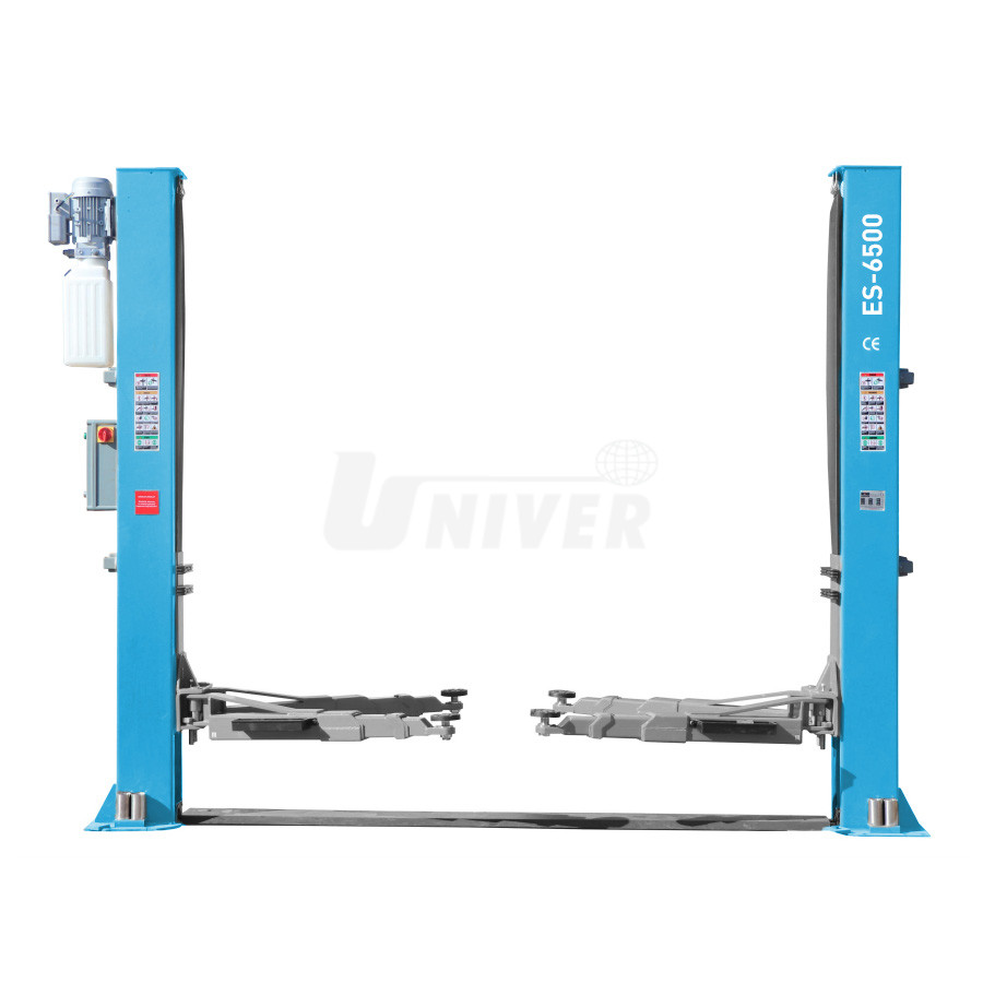 Elektrohydraulický dvojstĺpový asymetrický zdvihák pre osobné a ľahké nákladné vozidlá s nosnosťou 6500 kg, s nízkym prahom.