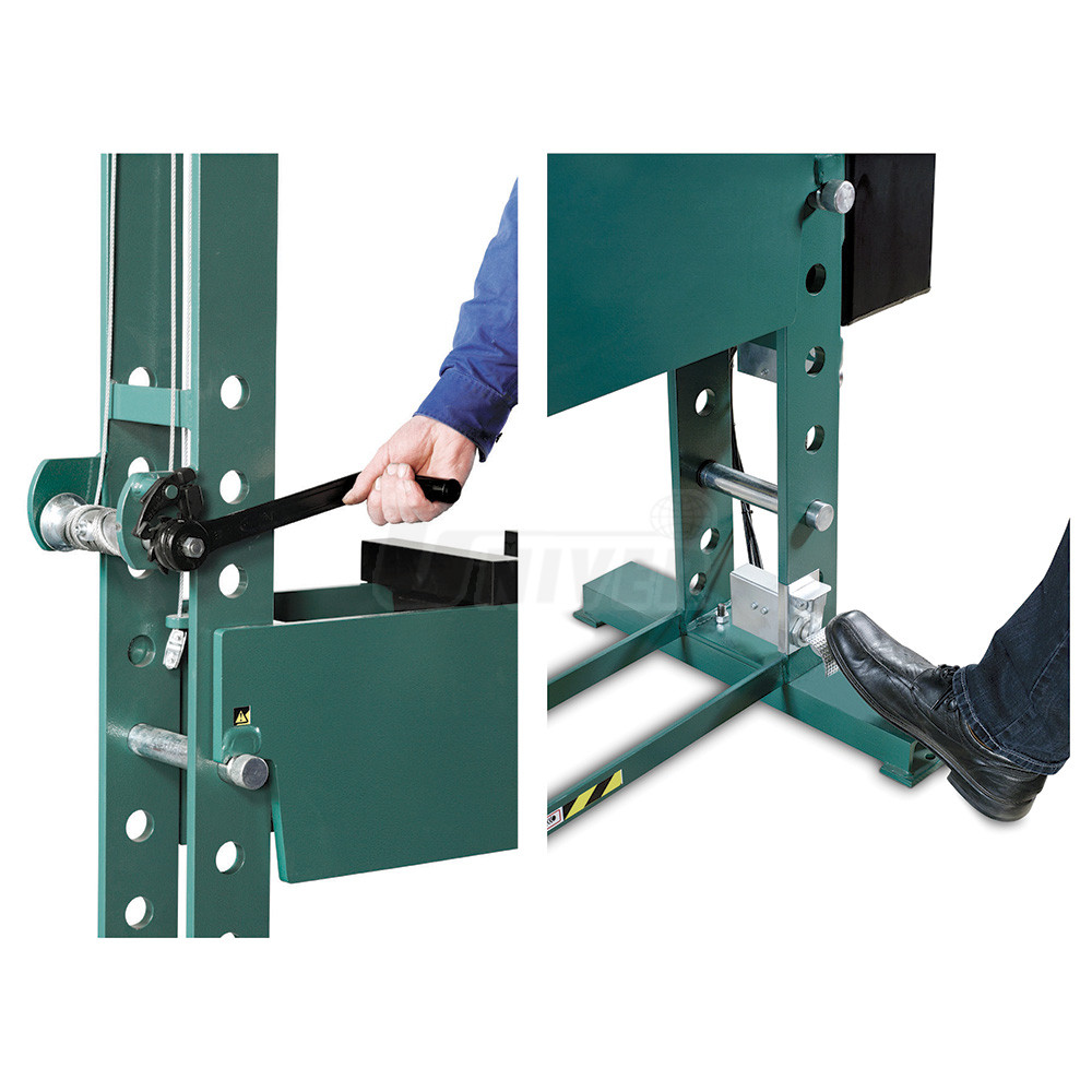 - rychlé a bezpečné výškové nastavování lisovacího stolu pomocí brzděné kliky