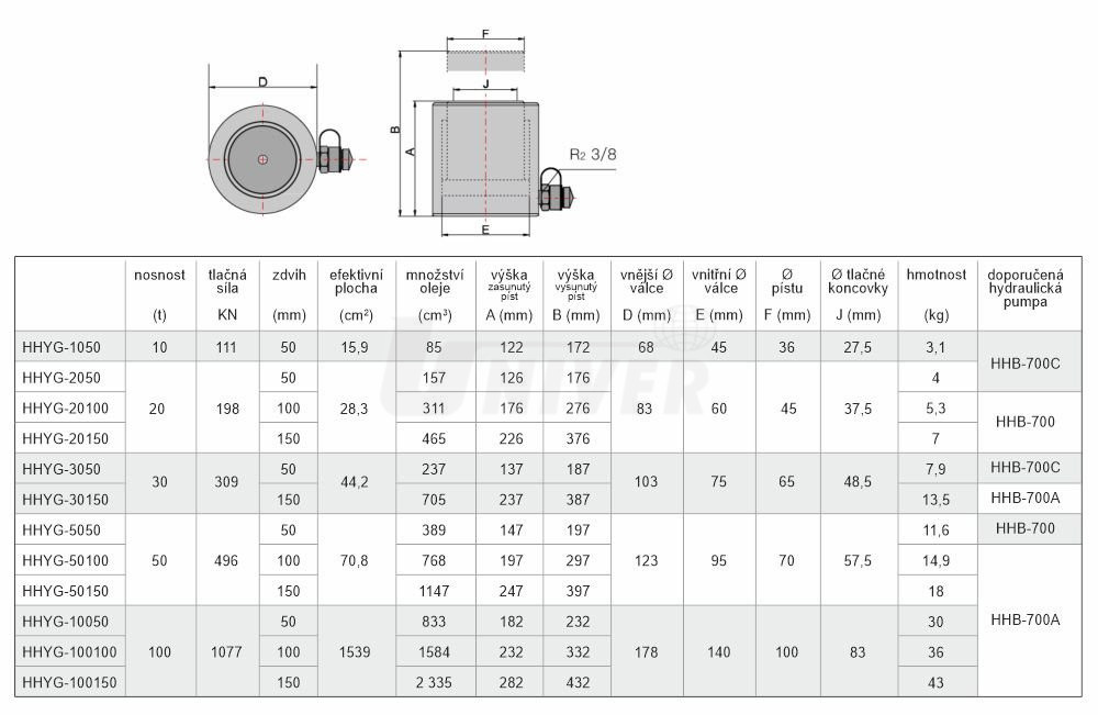 HHYG-1050 Hydraulický zvedací válec 10 t (50 mm)