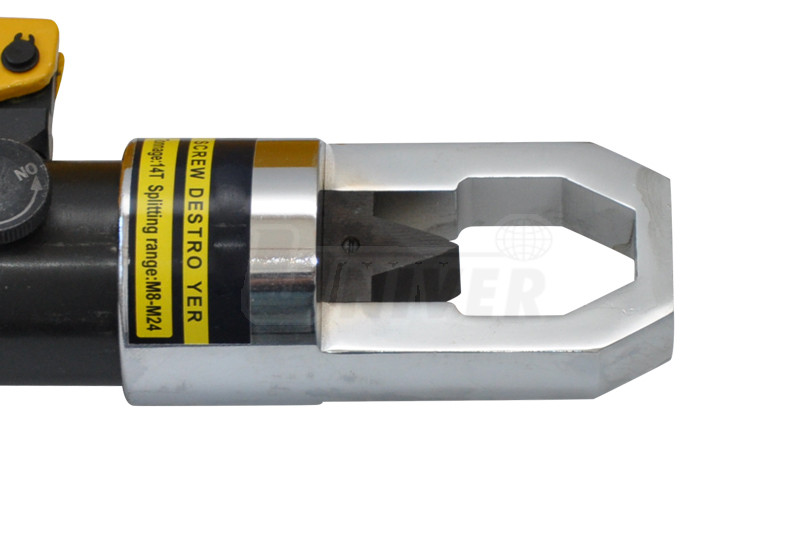 Výkonný pákový hydraulický přístroj se používá na rozseknutí / roztržení poškozených, stržených nebo zarezlých matic, které nejdou normálně povolit.- hydraulický pákový trhák matic disponuje sílou rozseknutí 14 t a dokáže spolehlivě rozseknout matice M8 – M24